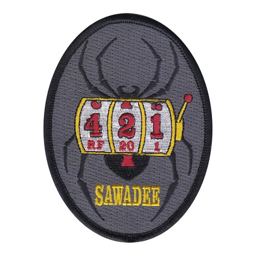 Custom patches for the 421st Fighter Squadron at Hill Air Force Base, Utah. Our 421 FS patches are 100% embroidered with Velcro backing.