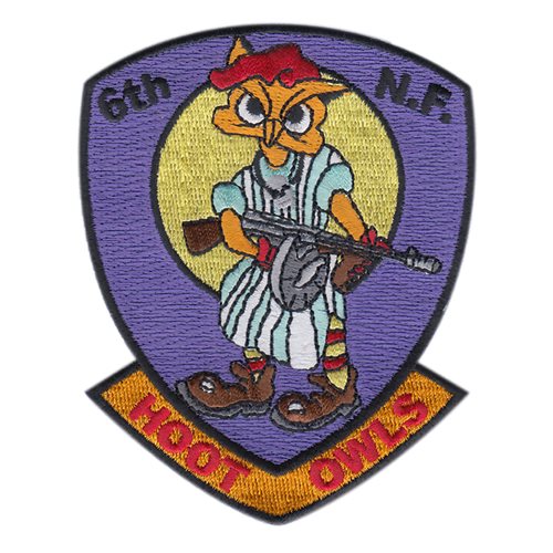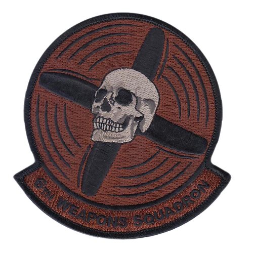 Custom patches for the 6th Weapons Squadron at Nellis Air Force Base, Nevada. Our 6 WPS patches are 100% embroidered with Velcro backing.