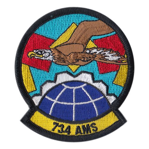 Custom patches for the 731st Air Mobility Squadron at Andersen Air Force Base, Guam. Our 734 AMS patches are 100% embroidered with Velcro backing.
