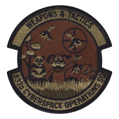 Custom patches for the 833d Cyberspace Operations Squadron at Joint Base San Antonio-Lackland, Texas. Your 833 COS patches are 100% embroidered with Velcro backing.