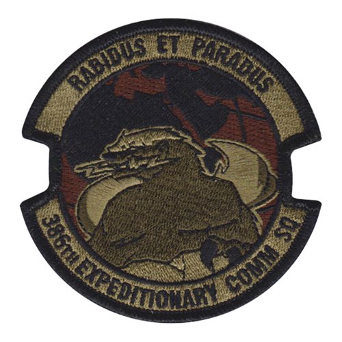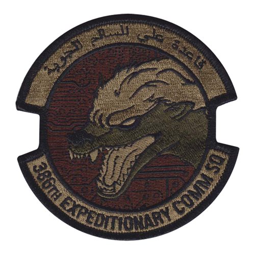 Custom patches for the 386th Expeditionary Communications Squadron at Ali Al Salem Air Base, Kuwait. Your 386 ECS patches are 100% embroidered with Velcro backing.