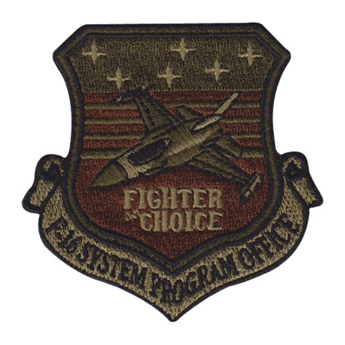 Custom patches for the F-16 System Program Office at Hill Air Force Base, Utah. Our F-16 SPO patches are 100% embroidered with Velcro backing.