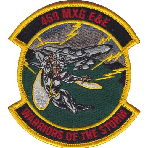 Custom patches for the 459th Maintenance Group at Joint Base Andrews, Maryland. Our 459 MXG patches are 100% embroidered with Velcro backing.