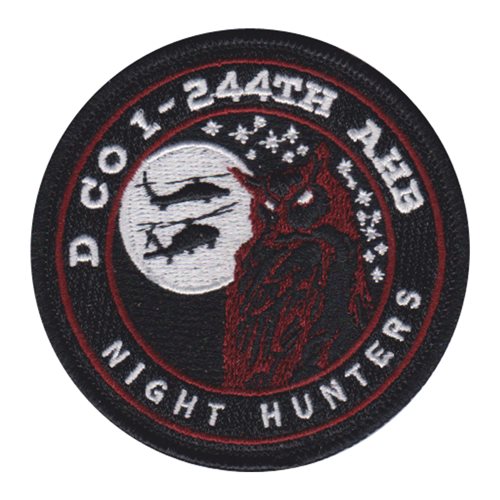 Custom patches for the 1-244 Assault Helicopter Battalion. Our 1-244 AHB patches are 100% embroidered with Velcro backing.