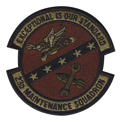 Custom patches for the 23rd Maintenance Squadron at Moody Air Force Base, Georgia. Our 23 MXS patches are 100% embroidered with Velcro backing.