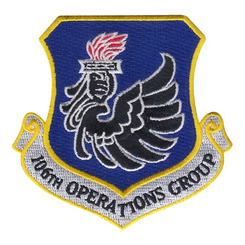 Custom patches for the 106th Operations Group. Our 106 OG patches are 100% embroidered with Velcro backing.