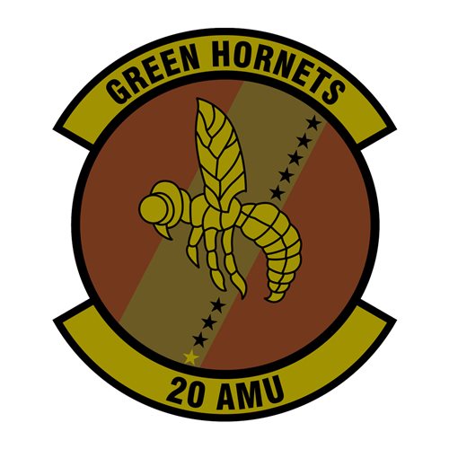 Custom patches for the 20th Aircraft Maintenance Unit at Shaw Air Force Base, South Carolina. Our 20 AMU patches are 100% embroidered with Velcro backing.