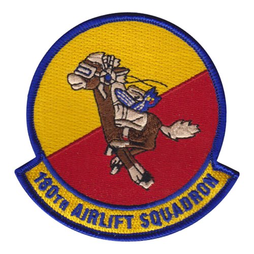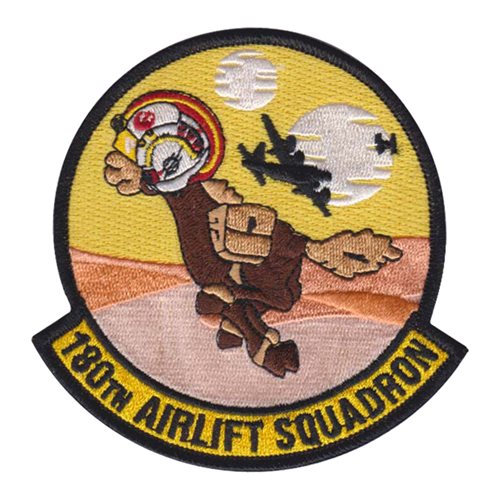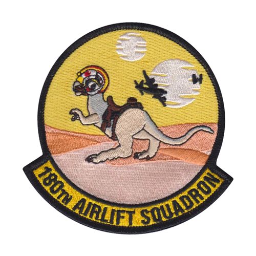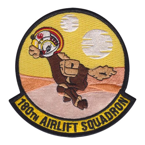 Custom patches for the 180th Airlift Squadron of the Missouri Air National Guard. Our 180 AS MO ANG patches are 100% embroidered with Velcro backing.