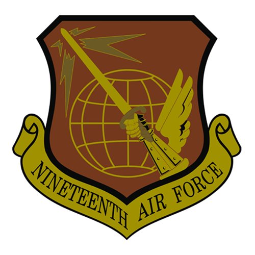 Custom patches for the Nineteenth Air Force at Joint Base San Antonio-Randolph, Texas. Our 19 AF patches are 100% embroidered with Velcro backing.