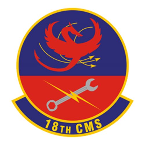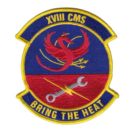 Custom patches for the 18th Component Maintenance Squadron at Kadena Air Base, Japan. Your 18 CMS patches are 100% embroidered with Velcro backing.
