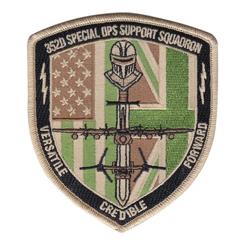 Custom patches for the 352nd Special Operations Support Squadron at Royal Air Force base RAF Mildenhall, in Suffolk, Eastern England. Our 352 SOSS patches are 100% embroidered with Velcro backing.