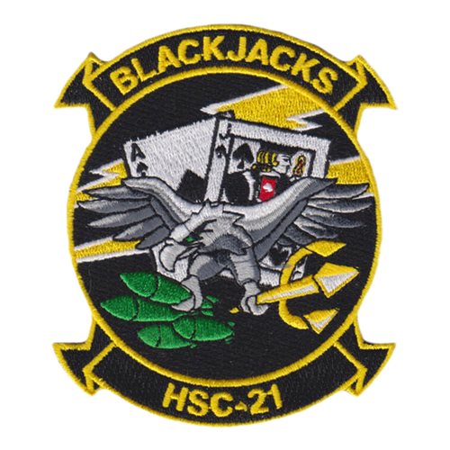 Custom patches for the Helicopter Sea Combat Squadron 21 at Naval Air Station North Island. Our HSC-21 patches are 100% embroidered with Velcro backing.