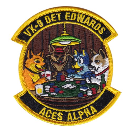 Custom patches for the Air Test and Evaluation Squadron Nine at Naval Air Weapons Station China Lake, California. Our VX-9 patches are 100% embroidered with Velcro backing.