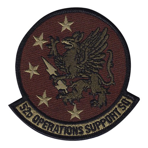 Custom patches for the 52nd Operations Support Squadron at Spangdahlem Air Base, Germany. Our 52 OSS patches are 100% embroidered with Velcro backing.