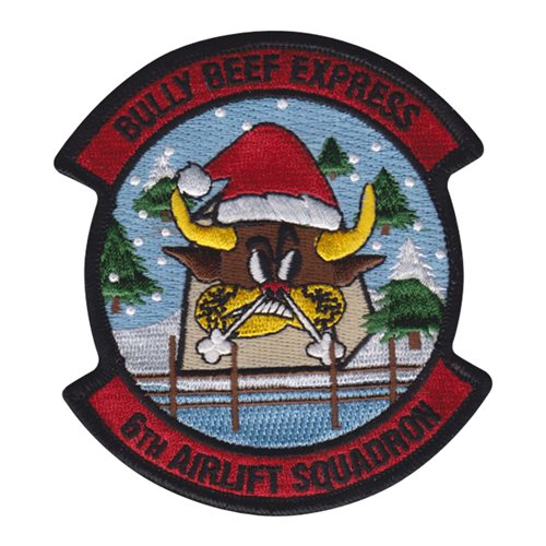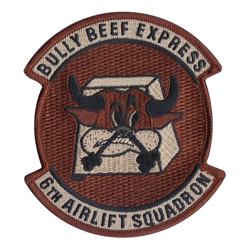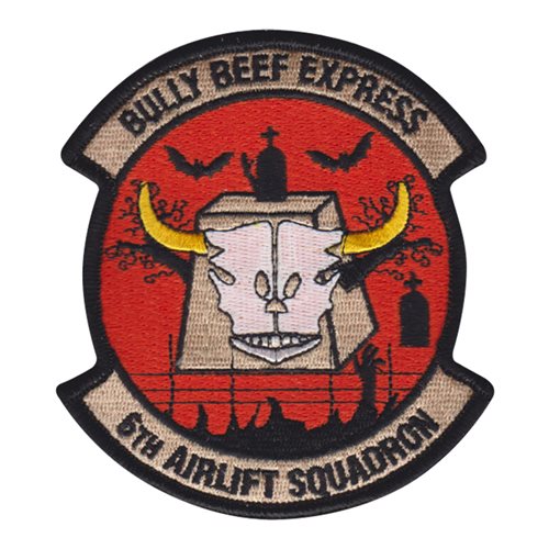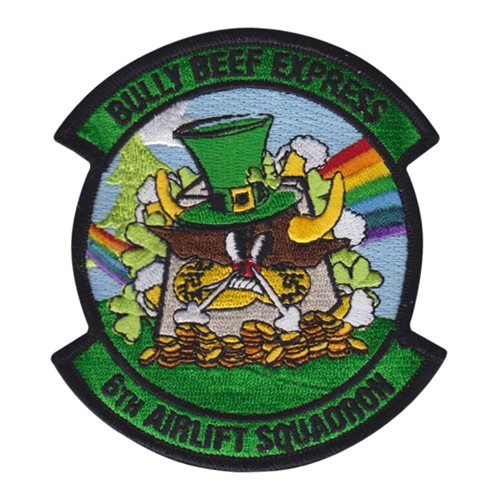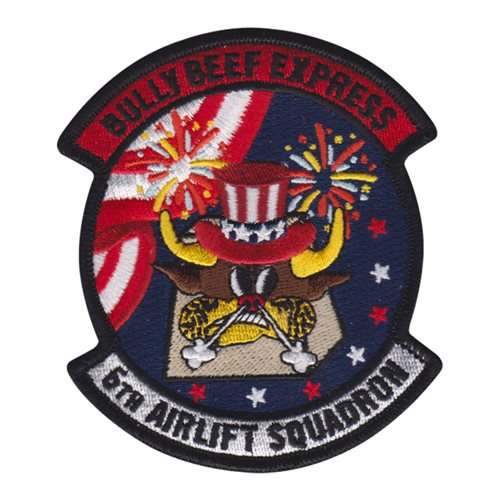 Custom patches for the 6th Airlift Squadron at Joint Base McGuire-Dix-Lakehurst, New Jersey. Our 6 AS patches are 100% embroidered with Velcro backing.
