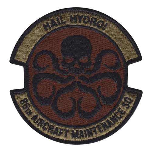 Custom patches for the 86th Aircraft Maintenance Squadron at Ramstein Air Base, Germany. Our 86 AMXS patches are 100% embroidered with Velcro backing.