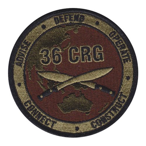 Custom patches for the 36th Contingency Response Group at Andersen Air Force Base, Guam. Our 36 CRG patches are 100% embroidered with Velcro backing.