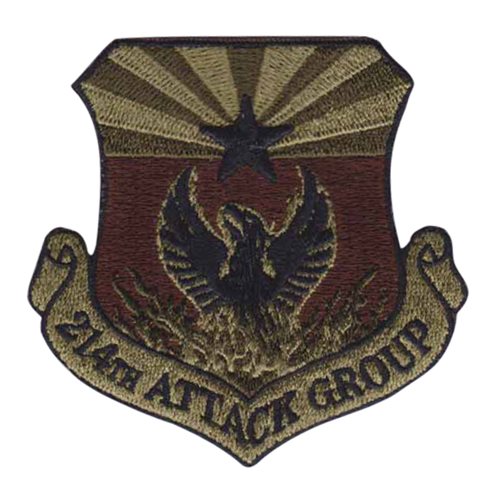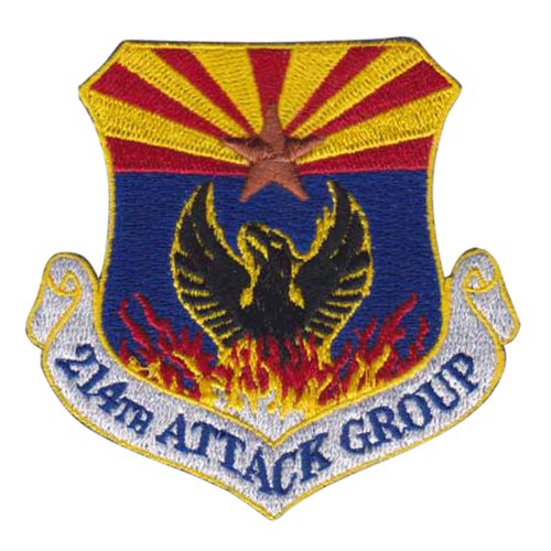 Custom patches for the 214th Attack Group at Davis-Monthan Air Force Base, Tucson, Arizona. Our 214 ATKG patches are 100% embroidered with Velcro backing.