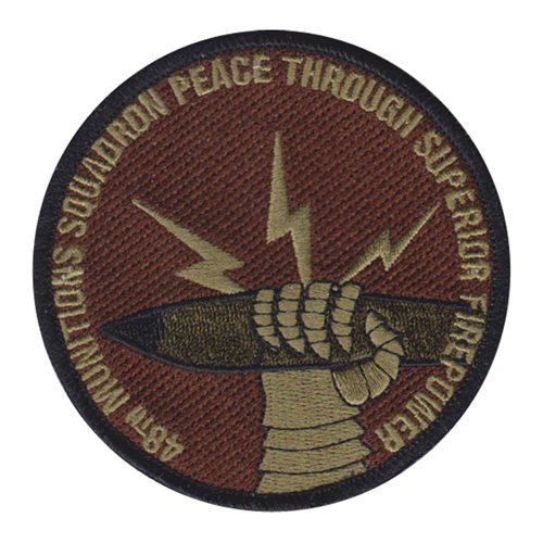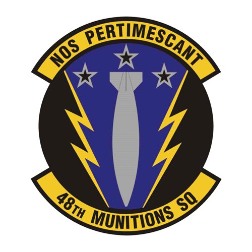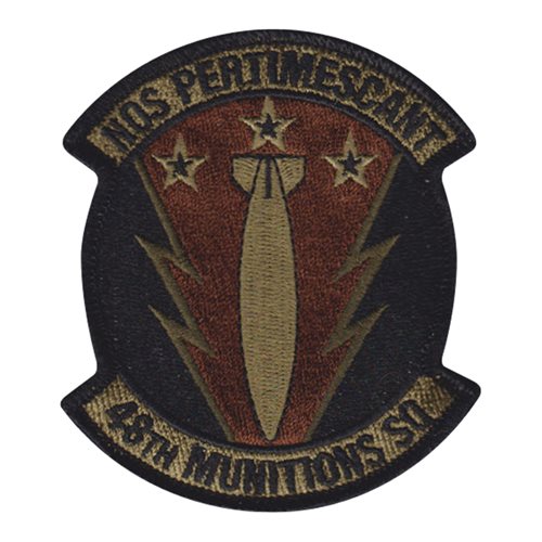 Custom patches for the 48th Munitions Squadron at Royal Air Force Lakenheath, England. Our 48 MUNS patches are 100% embroidered with Velcro backing.
