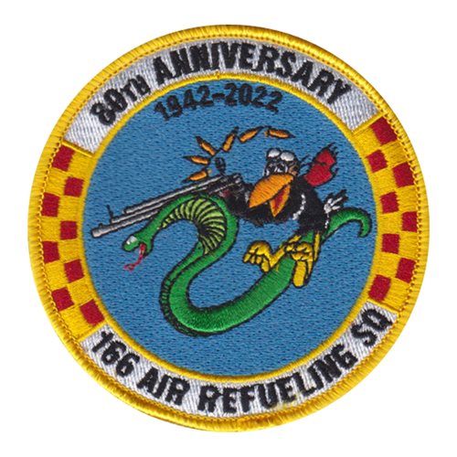 Custom patches for the 166th Air Refueling Squadron at Rickenbacker Air National Guard Base, Columbus, Ohio. Our 166 ARS OH ANG patches are 100% embroidered with Velcro backing.