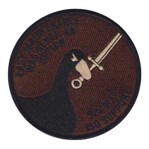 Custom patches for the 92nd Maintenance Squadron at Fairchild Air Force Base, Washington. Our 92 MXS patches are 100% embroidered with Velcro backing.
