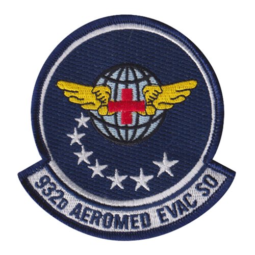 Custom patches for the 932nd Aeromedical Evacuation Squadron at Scott Air Force Base, Illinois. Our 932 AES patches are 100% embroidered with Velcro backing.