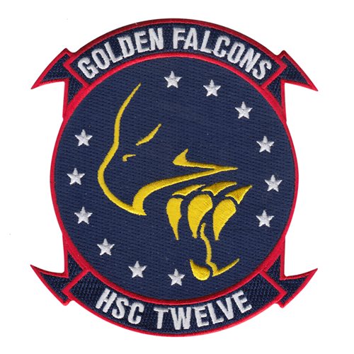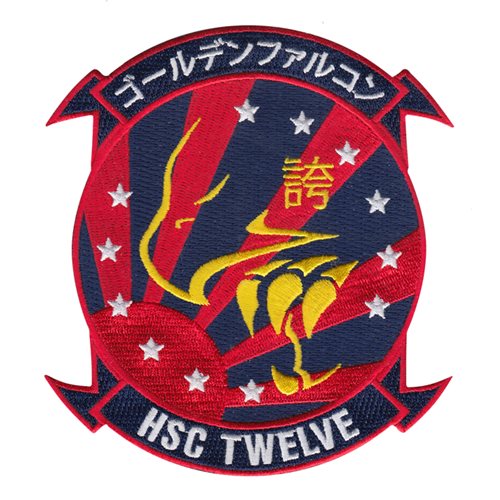 Custom patches for the Helicopter Sea Combat Squadron 12 at Naval Air Facility, Atsugi, Japan. Our HSC-12 patches are 100% embroidered with Velcro backing.