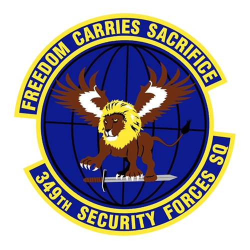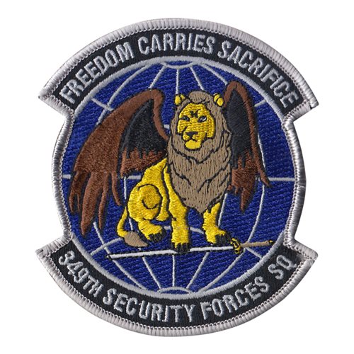 Custom patches for the 349th Security Forces Squadron at Travis Air Force Base, California. Our 349 SFS patches are 100% embroidered with Velcro backing.