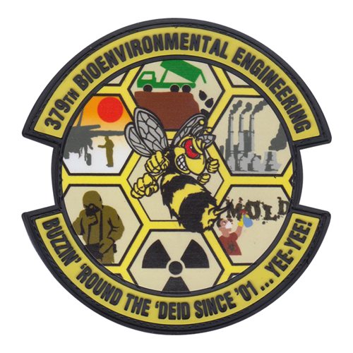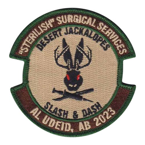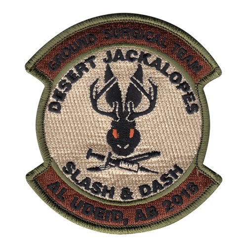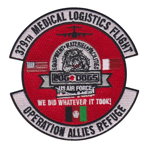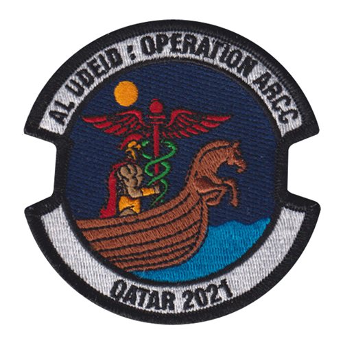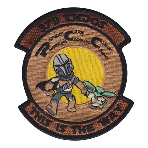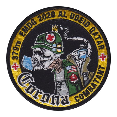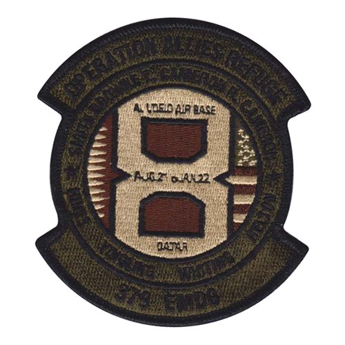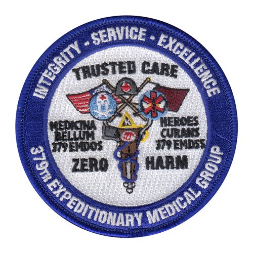 Custom patches for the 379th Expeditionary Medical Group at Al Udeid Air Base, Qatar. Our 379 EMDG patches are 100% embroidered with Velcro backing.