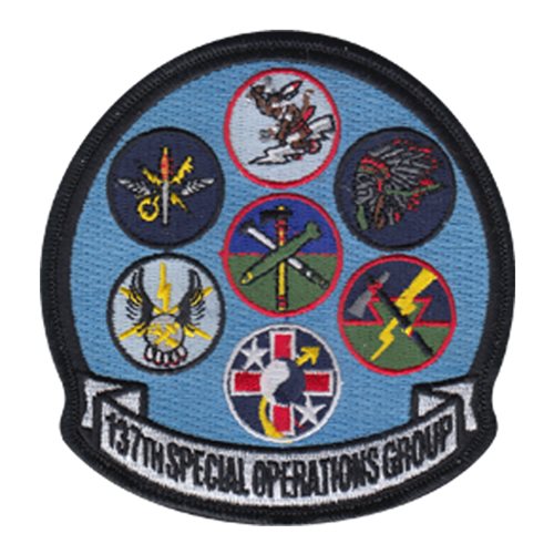 Custom patches for the 137th Special Operations Group at Oklahoma Air National Guard stationed at Tinker Air Force Base, Oklahoma. Our 137 SOG OK ANG patches are 100% embroidered with Velcro backing.