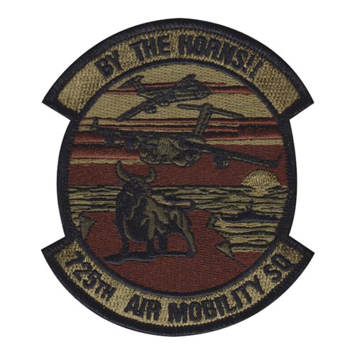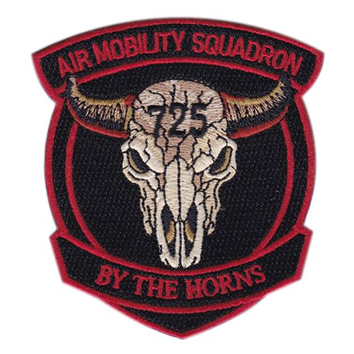 Custom patches for the 725th Air Mobility Squadron at Ramstein Air Base, Germany. Your 725 AMS patches are 100% embroidered with Velcro backing.
