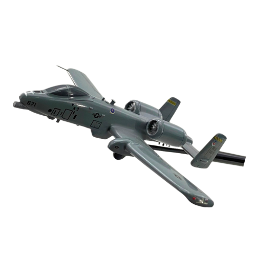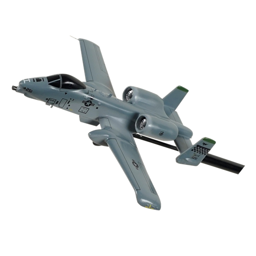 Your Fairchild Republic A-10 Thunderbolt II custom briefing stick is created just for you! Our aircraft briefing stick models are hand-carved from solid mahogany wood, with detailed squadron markings and unique bureau number. The 6 inch long airplane model is attached to a sturdy wooden rod, and is a perfect training aid for briefing and debriefing BFM and surface attack.