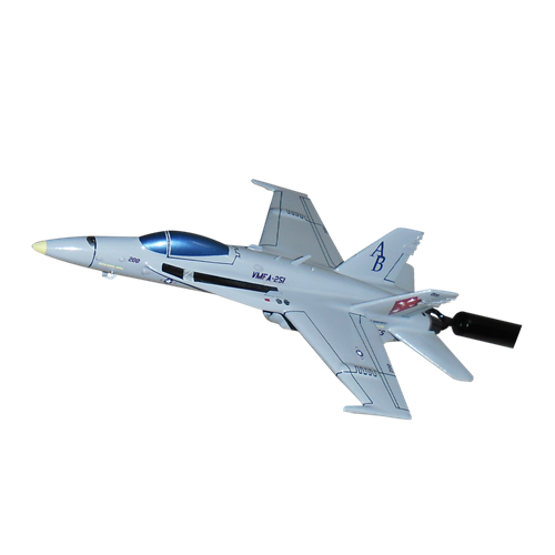 Your McDonnell Douglas (now Boeing) F/A-18C/D Hornet custom briefing stick is created just for you! Our aircraft briefing stick models are hand-carved from solid mahogany wood, with detailed squadron markings and unique bureau number. The 6 inch long airplane model is attached to a sturdy wooden rod, and is a perfect training aid for briefing and debriefing BFM and surface attack.