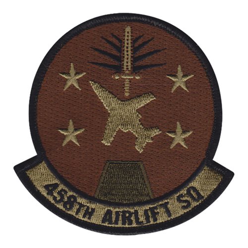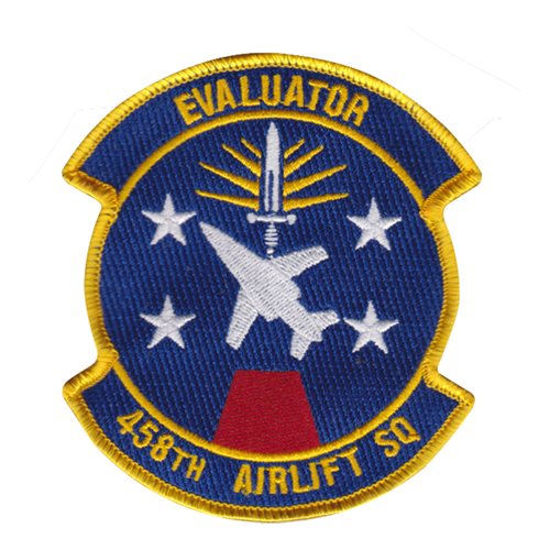 Custom patches for the 458th Airlift Squadron at Scott Air Force Base, Illinois. Our 458 AS patches are 100% embroidered with Velcro backing.
