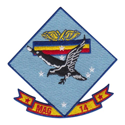 Custom patches for the Marine Aircraft Group 14 at Marine Corps Air Station Cherry Point, North Carolina. Our MAG-14 patches are 100% embroidered with Velcro backing.