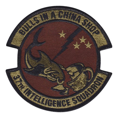 Custom patches for the 37th intelligence Squadron at Fort Meade, Maryland. Our 37 IS patches are 100% embroidered with Velcro backing.