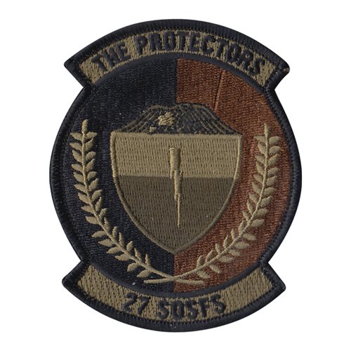 Custom patches for 27th Special Operations Security Squadron at Cannon Air Force Base, New Mexico. Our 27 SOSFS patches are 100% embroidered with Velcro backing.
