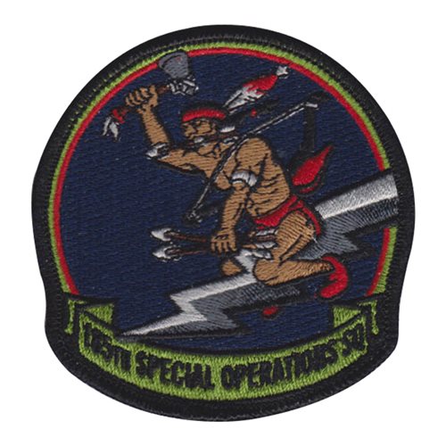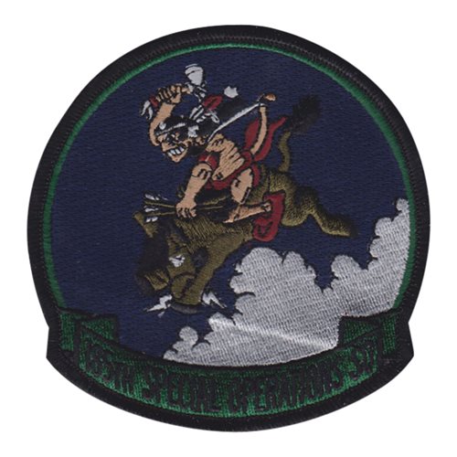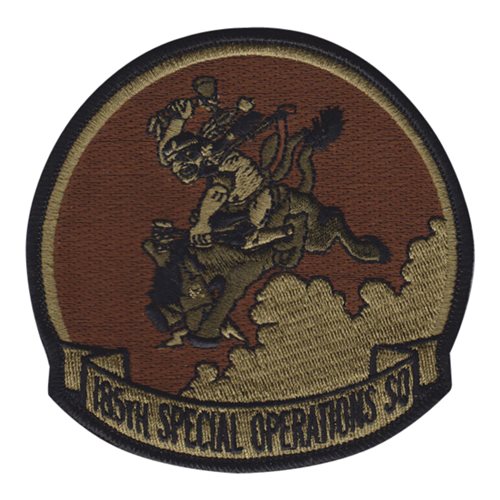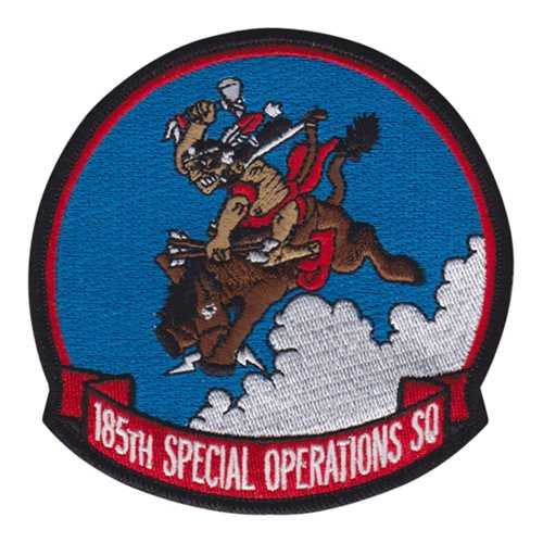 Custom patches for the 185th Special Operations Squadron at Tinker Air Force Base, Oklahoma. Our 185 SOS OK ANG patches are 100% embroidered with Velcro backing.