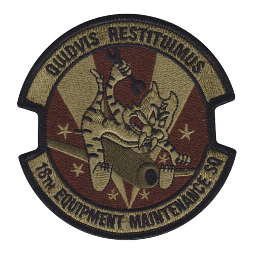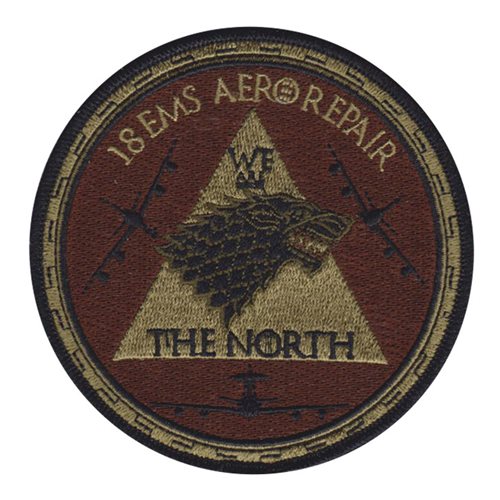 Custom patches for the 18th Equipment Maintenance Squadron at Kadena Air Base, Okinawa, Japan. Our 18 EMS patches are 100% embroidered with Velcro backing.