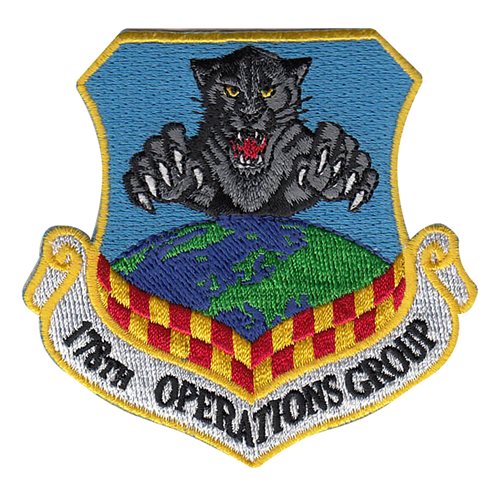 Custom patches for the 178th Operations Group at Air National Guard, Ohio. Our 178 OG patches are 100% embroidered with Velcro backing.