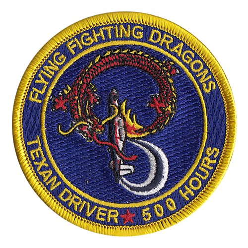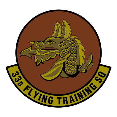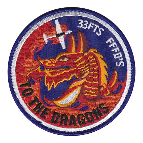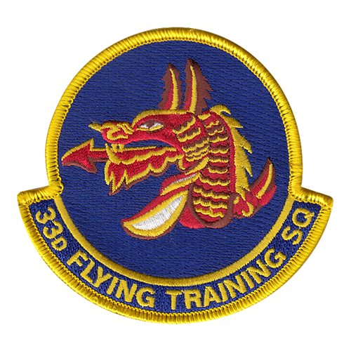 Custom patches for 33rd Flying Training Squadron at Vance Air Force Base, Oklahoma. Our 33 FTS patches are 100% embroidered with Velcro backing.