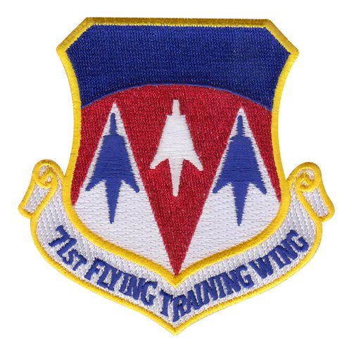 Custom patches for 71st Flying Training Wing at Vance Air Force Base,Oklahoma. Our 71st Flying Training Wing patches are 100% embroidered with Velcro backing.