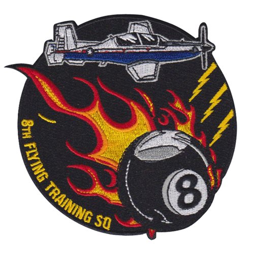 Custom patches for 8th Flying Training Squadron at Vance Air Force Base, Oklahoma. Our 8 FTS patches are 100% embroidered with Velcro backing.
