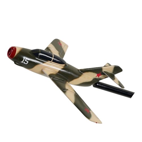 Your Mikoyan-Gurevich MiG-15 Fagot custom briefing stick is created just for you! Our aircraft briefing stick models are hand-carved from solid mahogany wood, with detailed squadron markings and unique bureau number. The 6 inch long airplane model is attached to a sturdy wooden rod, and is a perfect training aid for briefing and debriefing BFM and surface attack.