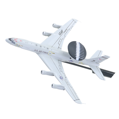 Your Boeing E-3 Sentry custom briefing stick is created just for you! Our aircraft briefing stick models are hand-carved from solid mahogany wood, with detailed squadron markings and unique bureau number. The 6 inch long airplane model is attached to a sturdy wooden rod, and is a perfect training aid for briefing and debriefing BFM and surface attack.
