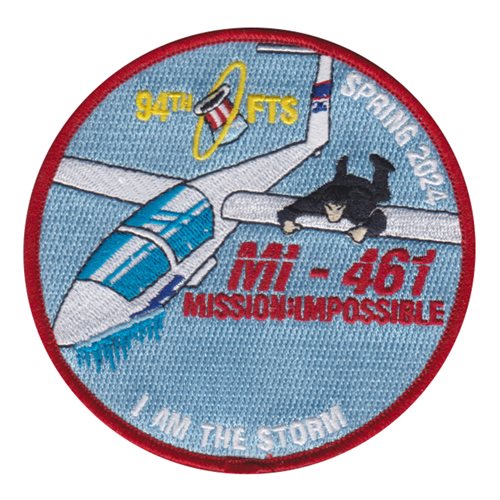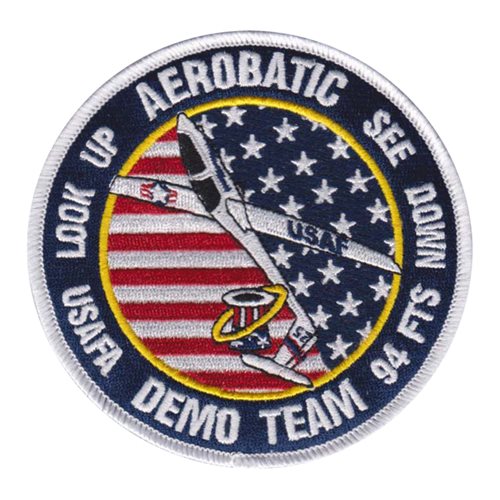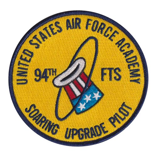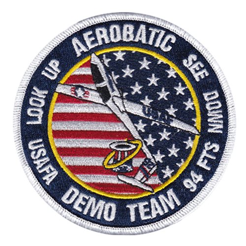 Custom patches for the 94th Flying Team Squadron at the United States Air Force Academy. Our USAFA 94 FTS patches are 100% embroidered with Velcro backing.
