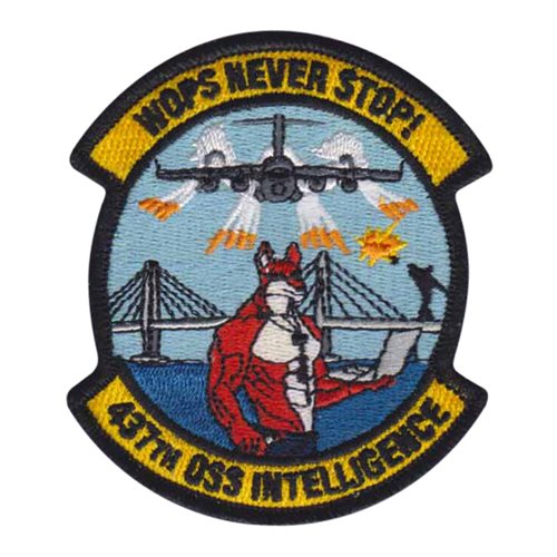 Custom patches for the 437th Operations Support Squadron at Charleston Air Force Base, South Carolina. Our 437 OSS patches are 100% embroidered with Velcro backing.