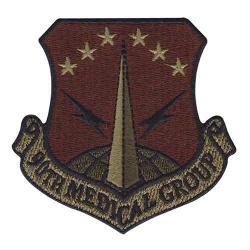 Custom patches for the 90th Medical Group at Francis E. Warren Air Force Base, Wyoming. Our 90 MDG patches are 100% embroidered with Velcro backing.