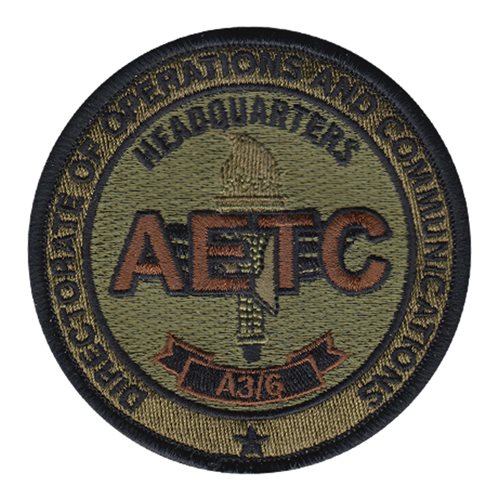 Custom patches for Headquarters Air Education and Training Command at Joint Base San Antonio-Randolph. Our HQ AETC patches are 100% embroidered with Velcro backing.