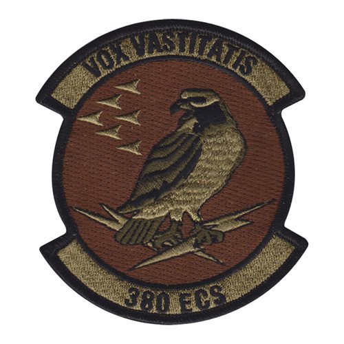 Custom patches for the 380th Expeditionary Communications Squadron at Al Dhafra, United Arab Emirates. Our 380 ECS patches are 100% embroidered with Velcro backing.